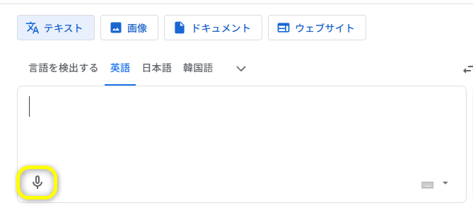 Google翻訳にいき、言語を英語にして左下のマイクのアイコンを押します。